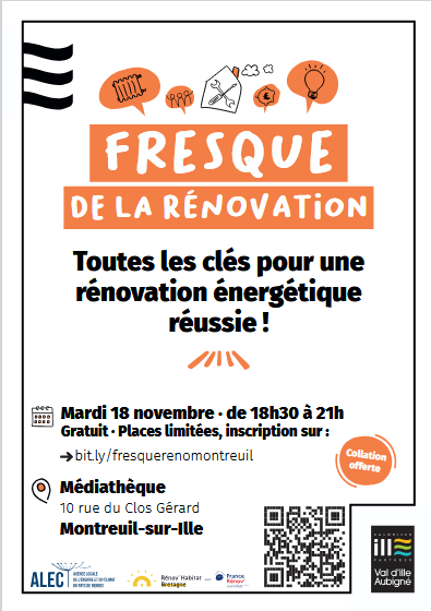 Mardi 18 novembre, 18h30-21h à la médiathèque de Montreuil-sur-Ille. Gratuit. Inscription obligatoire (places limitées) : https://bit.ly/fresquerenomontreuil